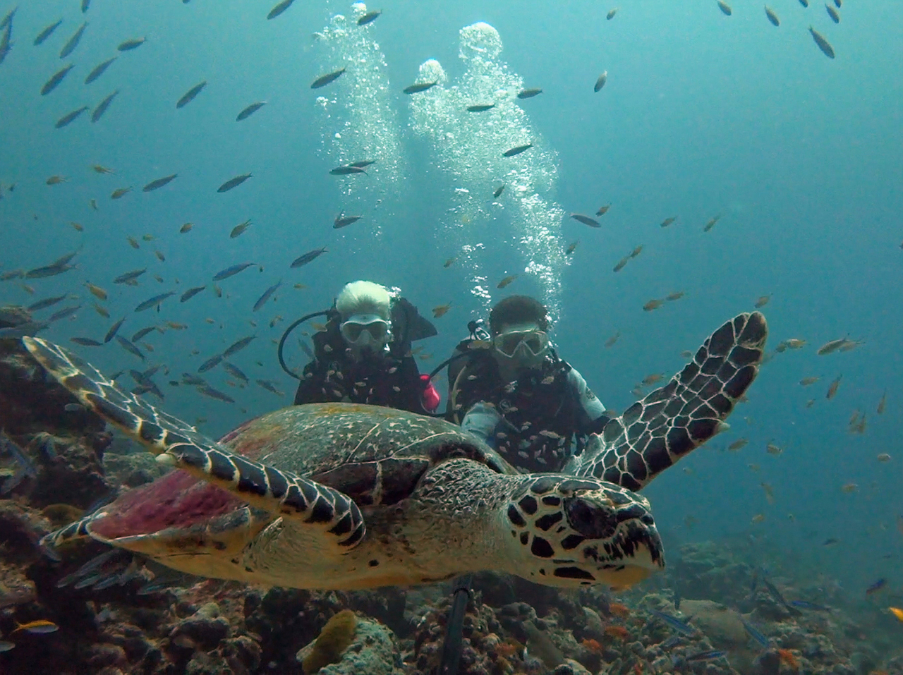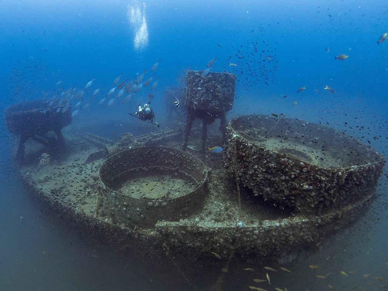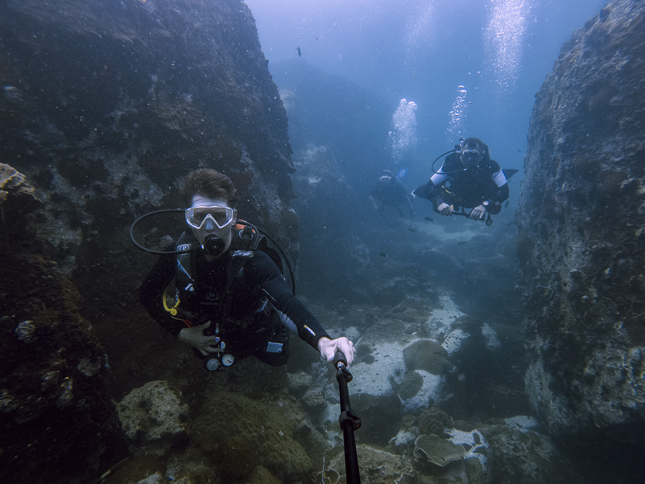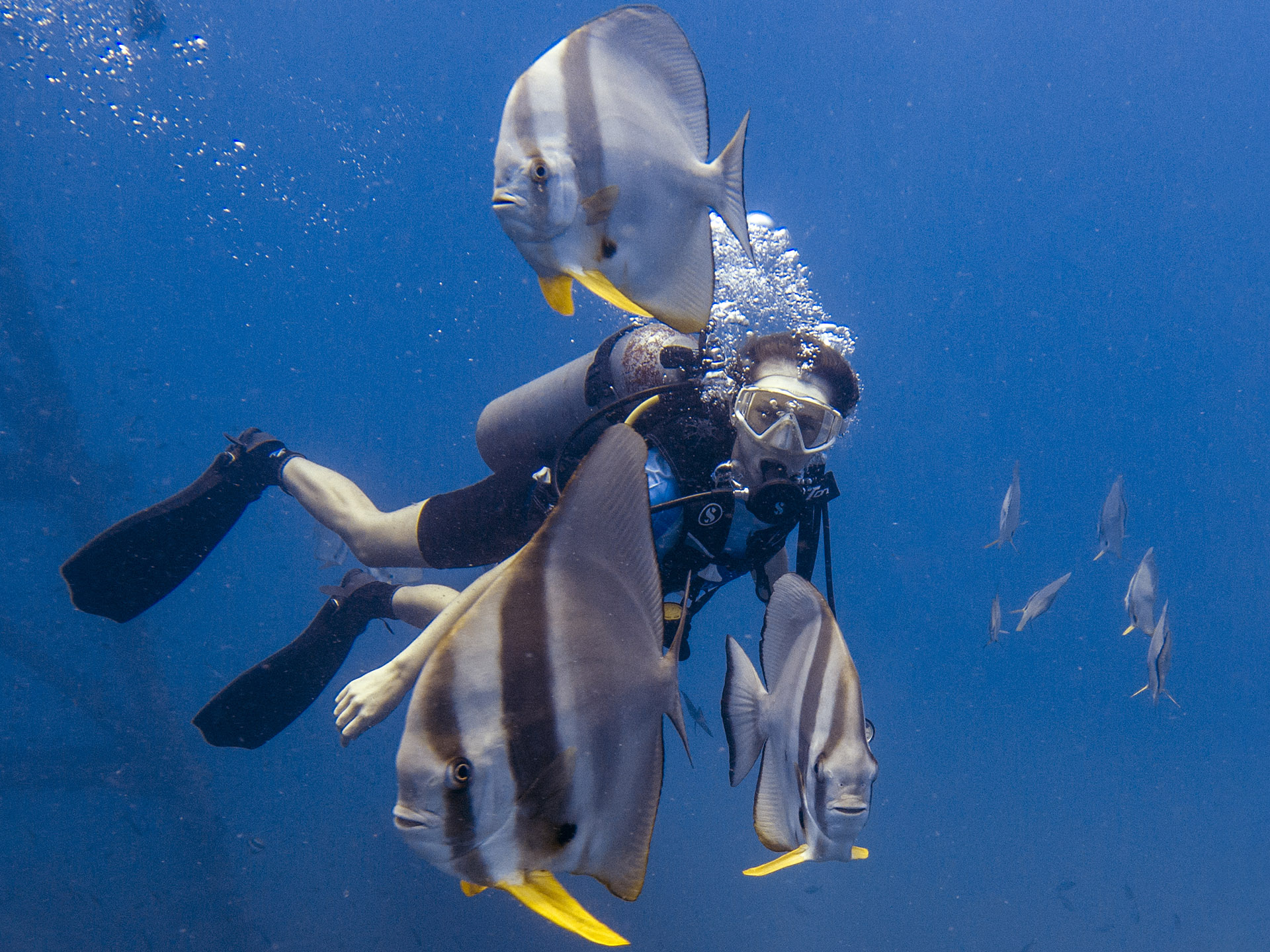 Первое погружение мы делали на дайвсайте "White Rock" острова Ко-Лан, где видели двух черепах, мурену и разные виды рыб, а также неплохую коллекцию кораллов. Второе — на "Mattaphon Wreck", там были огромные стаи рыб: барракуды и снэпперы. Третий дайв был с юго-восточной стороны острова Ко-Лан, там не предвещалось ничего особенно интересного, но мне просто хотелось потренировать плавучесть.
